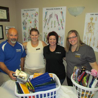 Friday, August 10th, Absolute Therapeutics held a fund raiser to help support the United Way’s Back Packs for Kids. As well as 2 baskets chocked full of school supplies, that were donated by clients over the course of the day, a total of $570.00 was raised through contributions from a variety of treatments that were provided by our practitioners.