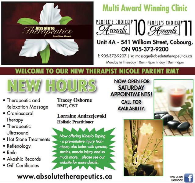 Where: Absolute Therapeutics 541 William Street 905-372-9200Date: Saturday, September 24, 2011