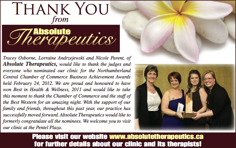 We would like to thank everyone who nominated us for the Northumberland Chamber of Commerce Business Achievement Awards held on February 25, 2011